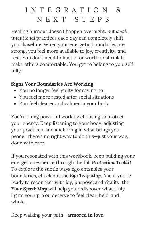 If you’re chronically drained, overgiving, or absorbing too much energy from the people around you… You don’t need more hustle. You need stronger boundaries. 🔥 Burnout Armor is your real-world guide to energetic protection. Fast resets. Gentle rituals. No guilt. Now available as a companion to my Protection Toolkit.